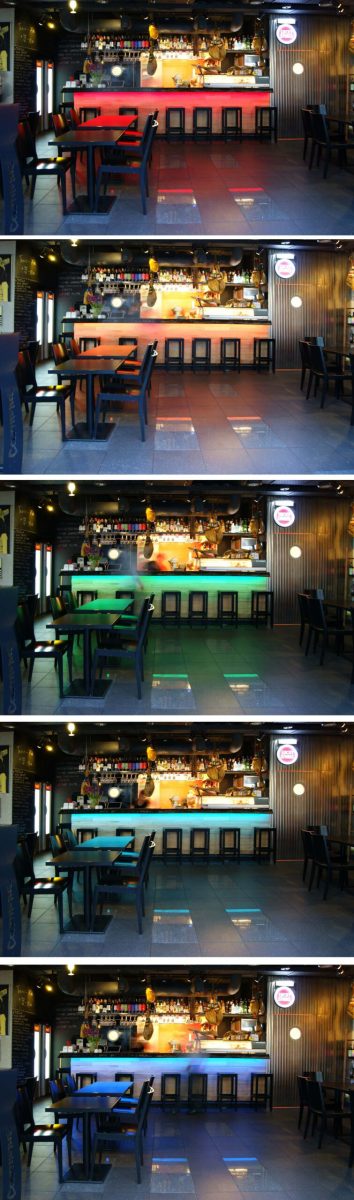 Pan Gołębiewski kreatywnie współpracował przy budowie i wyposażeniu lokalu. Jego autorskim pomysłem były lampki z kieliszków.
