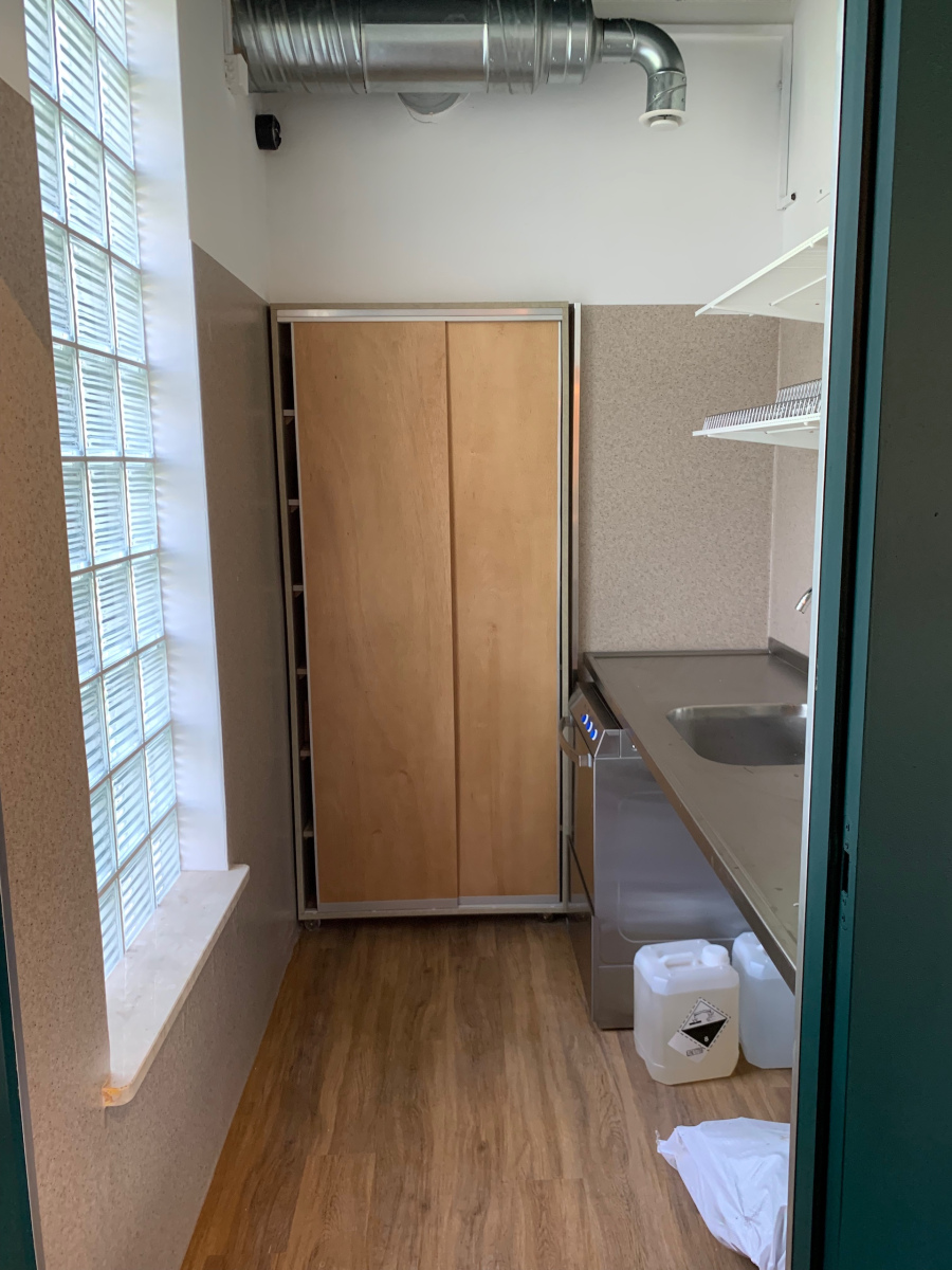 Duża hala kongresowa z wysokimi sufitami, w której znajduje się stoisko TECHNICA prezentujące sprzęt przemysłowy i pojemniki ze stali nierdzewnej. Inne kolorowe stoiska są widoczne po lewej stronie, a rzędy pustych czerwonych krzeseł są ustawione w tle po prawej stronie. projekt i nadzór Tatjana Kobuszewska trksystem.com
