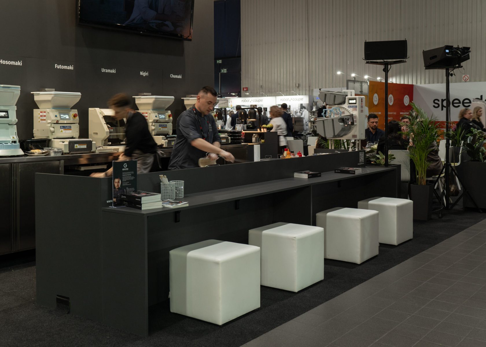 Stoisko targowe z warsztatami kulinarnymi live cooking Grafen targi Smakki 2024